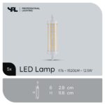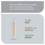 De SPL R7s LED Lamp is ontworpen om energie te besparen zonder in te boeten op lichtopbrengst. Met een verbruik van slechts 12.5W biedt deze lamp een krachtige lichtoutput van 1520 lumen. Dit betekent dat je kunt genieten van helder licht terwijl je energiekosten laag blijven.