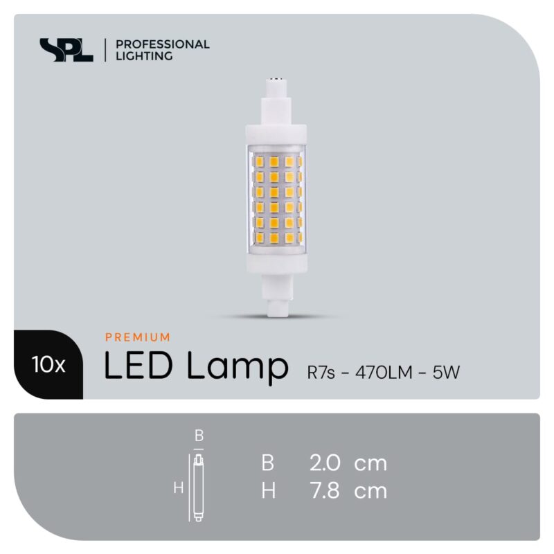 De SPL R7s LED Lamp is een premium lamp die garant staat voor kwaliteit en betrouwbaarheid. Met een lichtopbrengst van 470 lumen zorgt deze lamp voor voldoende verlichting in elke ruimte. Dankzij de premium eigenschappen geniet je van een langere levensduur en consistent helder licht.