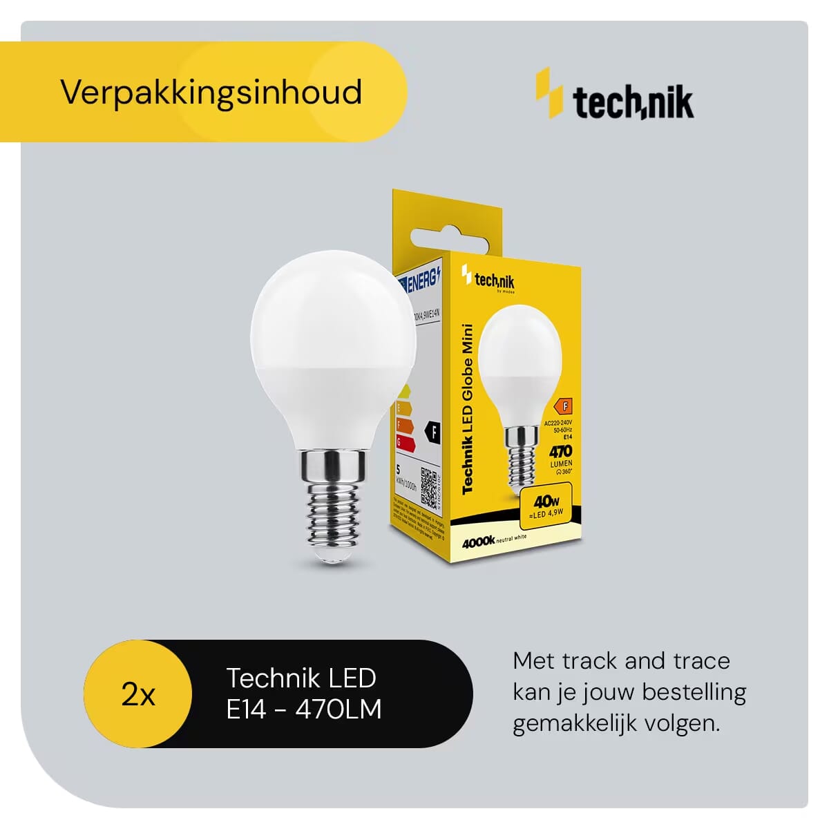Technik E14 LED Lamp 4.9W – 470lm – 4000K – Neutraal Wit – 2 stuks