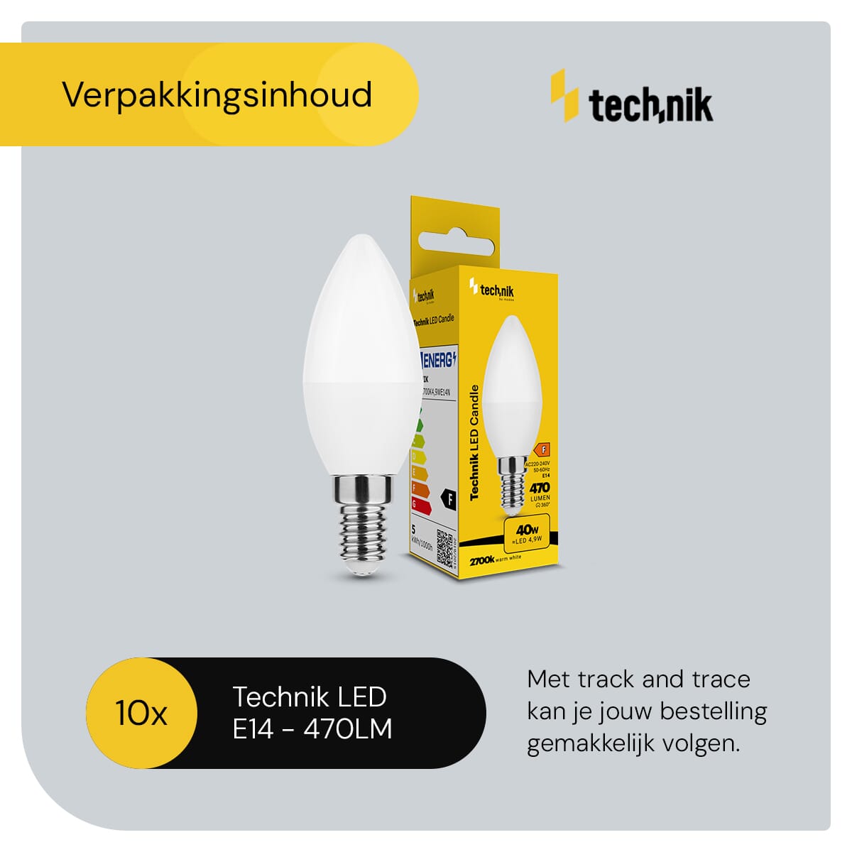 Technik E14 LED Lamp 4.9W – 490lm – 2700K – Warm Wit – LED Kaarslamp B35 – Vervangt 45W Halogeen Gloeilamp – 10 stuks
