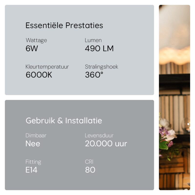 De Technik E14 LED Lamp 6W is een praktische keuze voor wie op zoek is naar energiezuinige en heldere verlichting.