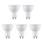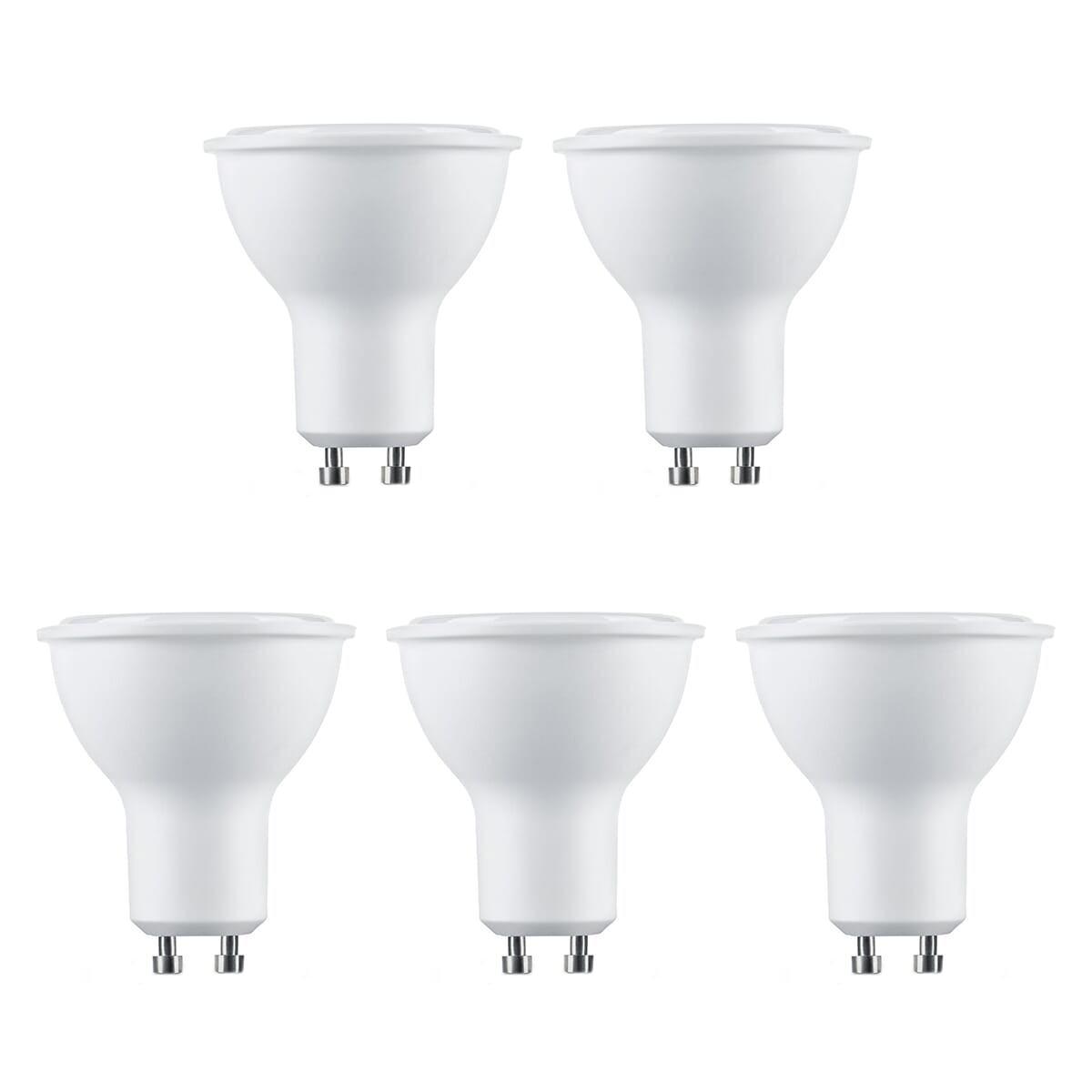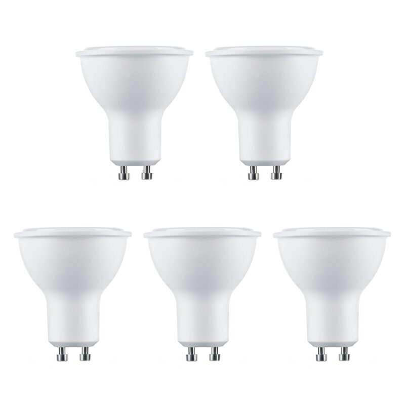 - Hoeveel lampen zitten er in een verpakking? Deze set bevat 5 stuks GU10 LED lampen.