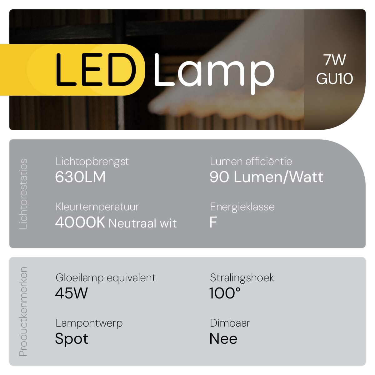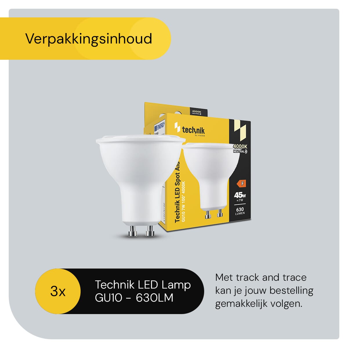 Technik GU10 LED Lamp 7W – 630lm – 4000K – Neutraal Wit – LED Spot – Vervangt 45W Halogeen Gloeilamp – 3 stuk