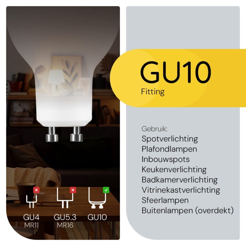 De GU10 fitting maakt de installatie eenvoudig en snel, zonder dat er extra gereedschap nodig is. Dit maakt het een praktische keuze voor zowel doe-het-zelvers als professionals.