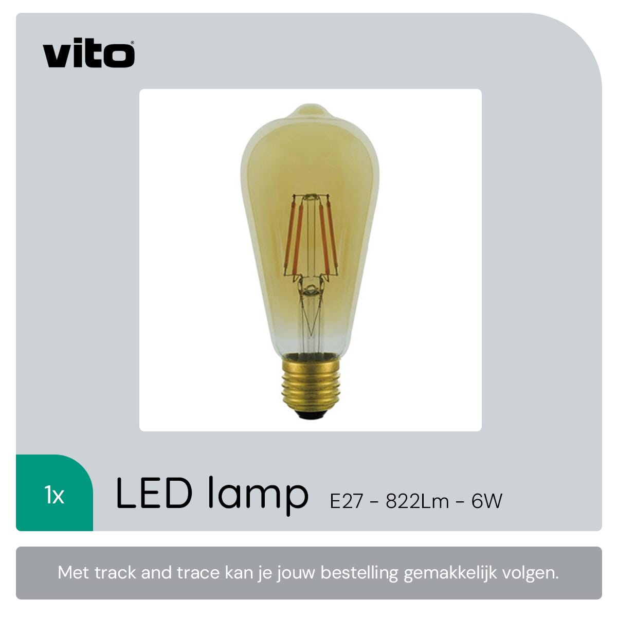 De VITO LED Filament Edisonlamp ST64 E27 is een energiezuinige lichtbron die de klassieke uitstraling van een gloeilamp combineert met de moderne efficiëntie van LED-technologie. Deze lamp is ontworpen om een warme, uitnodigende sfeer te creëren in woonkamers, restaurants of vintage armaturen. Met een vermogen van 6W vervangt deze lamp traditionele 60W gloeilampen, wat resulteert in aanzienlijke energiebesparingen.