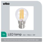 De VITO LED Filament Kogellamp G45 B22 is een praktische keuze voor wie op zoek is naar een energiezuinige en stijlvolle verlichtingsoplossing.