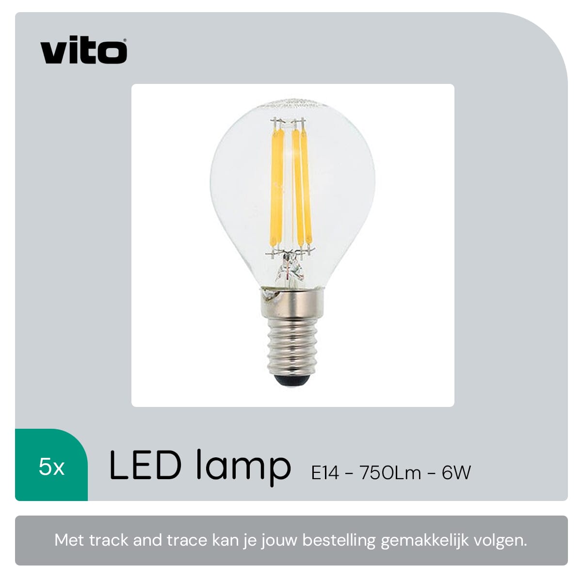 De VITO LED Filament Kogellamp is ontworpen met energie-efficiëntie in gedachten. Met een verbruik van slechts 6W bespaart deze Kogellamp aanzienlijk op energiekosten in vergelijking met traditionele gloeilamp. Bovendien heeft de Kogellamp een levensduur van 25.000 branduren, wat betekent dat hij minder vaak vervangen hoeft te worden.
