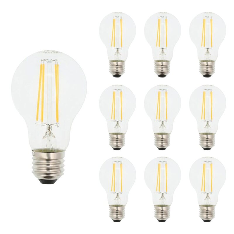 De VITO LED Filament Lamp A60 E27 is een energiezuinige lichtbron die ontworpen is om traditionele gloeilampen van 100W te vervangen. Met een vermogen van slechts 10W biedt deze lamp een lichtopbrengst van 1110 lumen en een warme kleurtemperatuur van 2700K. De lamp is voorzien van helder glas en heeft een diameter van 60mm, waardoor het een stijlvolle toevoeging is aan zowel woonkamers als restaurants en vintage armaturen.