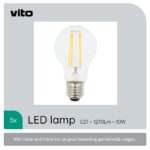 De VITO LED Filament Lamp A60 E27 is een praktische keuze voor iedereen die op zoek is naar een energiezuinige en stijlvolle verlichtingsoplossing.