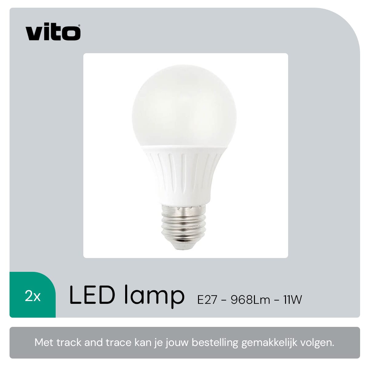 De VITO LED Filament Lamp A60 E27 is een energiezuinige lichtbron die ontworpen is om traditionele gloeilampen te vervangen. Met een vermogen van 11W biedt deze lamp een helderheid die vergelijkbaar is met een 75W gloeilamp. De lamp straalt een koud wit licht uit met een kleurtemperatuur van 6400K, wat ideaal is voor ruimtes waar helder en functioneel licht gewenst is, zoals woonkamers, restaurants of vintage armaturen.