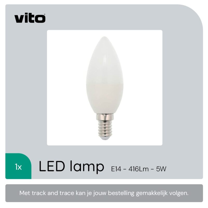 De VITO LED Kaarslamp verbruikt slechts 5W, wat aanzienlijk minder is dan traditionele 40W lampen. Dit maakt het een energiezuinige keuze die helpt om de energiekosten te verlagen. Bovendien heeft de lamp een levensduur van 10.000 branduren, wat betekent dat je minder vaak lampen hoeft te vervangen.