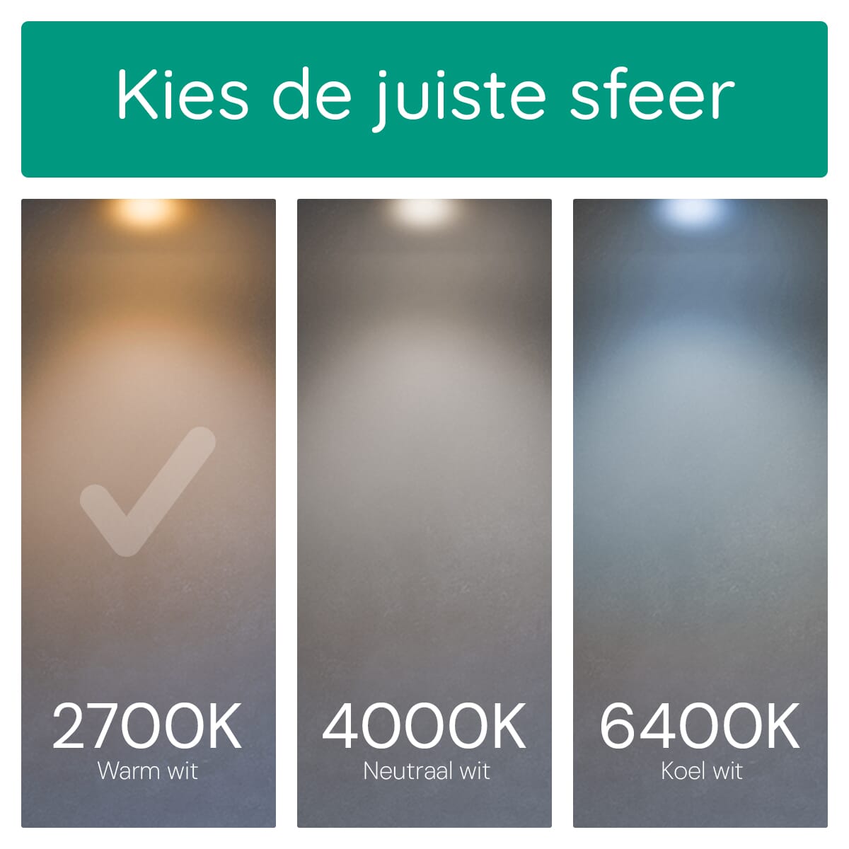 De lamp straalt een warm wit licht van 2700K uit, wat zorgt voor een gezellige en uitnodigende sfeer. Dit maakt het ideaal voor woonruimtes waar comfort en sfeer belangrijk zijn.