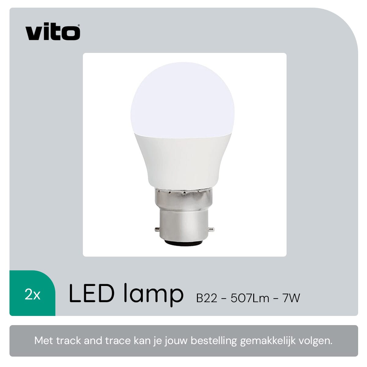 De VITO LED Kogellamp G45 B22 is een energiezuinige lichtbron die ontworpen is om traditionele 50W lampen te vervangen. Met een vermogen van 7W en een lichtopbrengst van 507 lumen, biedt deze LED Kogellamp een warm wit licht van 2700K. Deze lamp is geschikt voor gebruik in campers, caravans of als inbouwKogellamp, en werkt op een spanning van 220-240V. De compacte afmetingen met een diameter van 50mm maken het een veelzijdige keuze voor diverse toepassingen.