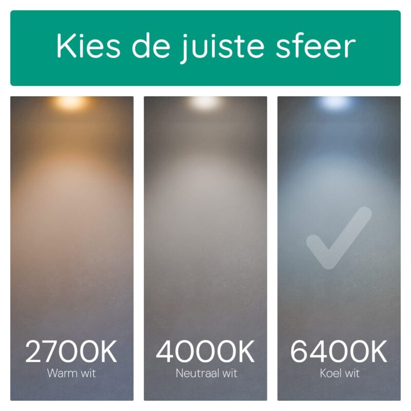 - Kleurtemperatuur: 6400K Koud Wit