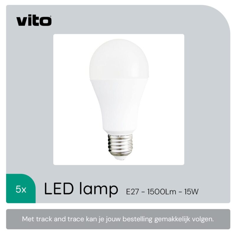 De VITO LED Lamp A60 E27 is een energiezuinige lichtbron die ontworpen is om traditionele gloeilampen te vervangen. Met een vermogen van 15W biedt deze lamp een lichtopbrengst die vergelijkbaar is met een 120W gloeilamp. De lamp straalt een koud wit licht uit van 6400K, wat ideaal is voor ruimtes waar helder en functioneel licht gewenst is, zoals woonkamers, restaurants of vintage armaturen.