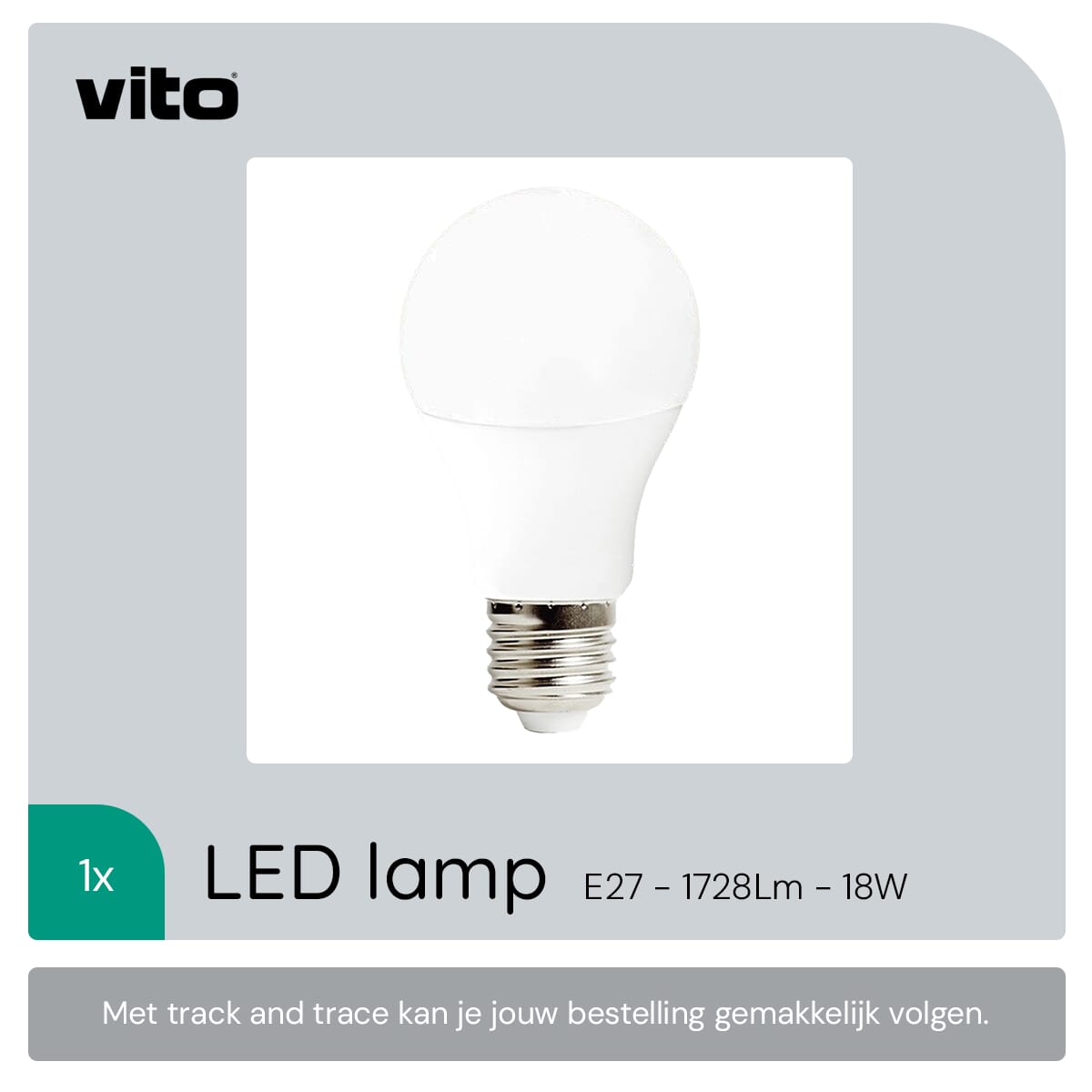 De VITO LED Lamp A70 E27 is een energiezuinige verlichtingsoplossing die ontworpen is om traditionele 150W lampen te vervangen. Met een vermogen van 18W en een lichtopbrengst van 1728 lumen, biedt deze LED Lamp een warm wit licht van 2700K. Deze lamp is geschikt voor gebruik huis, kantoor en vergelijkbare binnenruimtes, en werkt op een spanning van 220-240V. De compacte afmetingen met een diameter van 70mm maken het een veelzijdige keuze voor diverse toepassingen.
