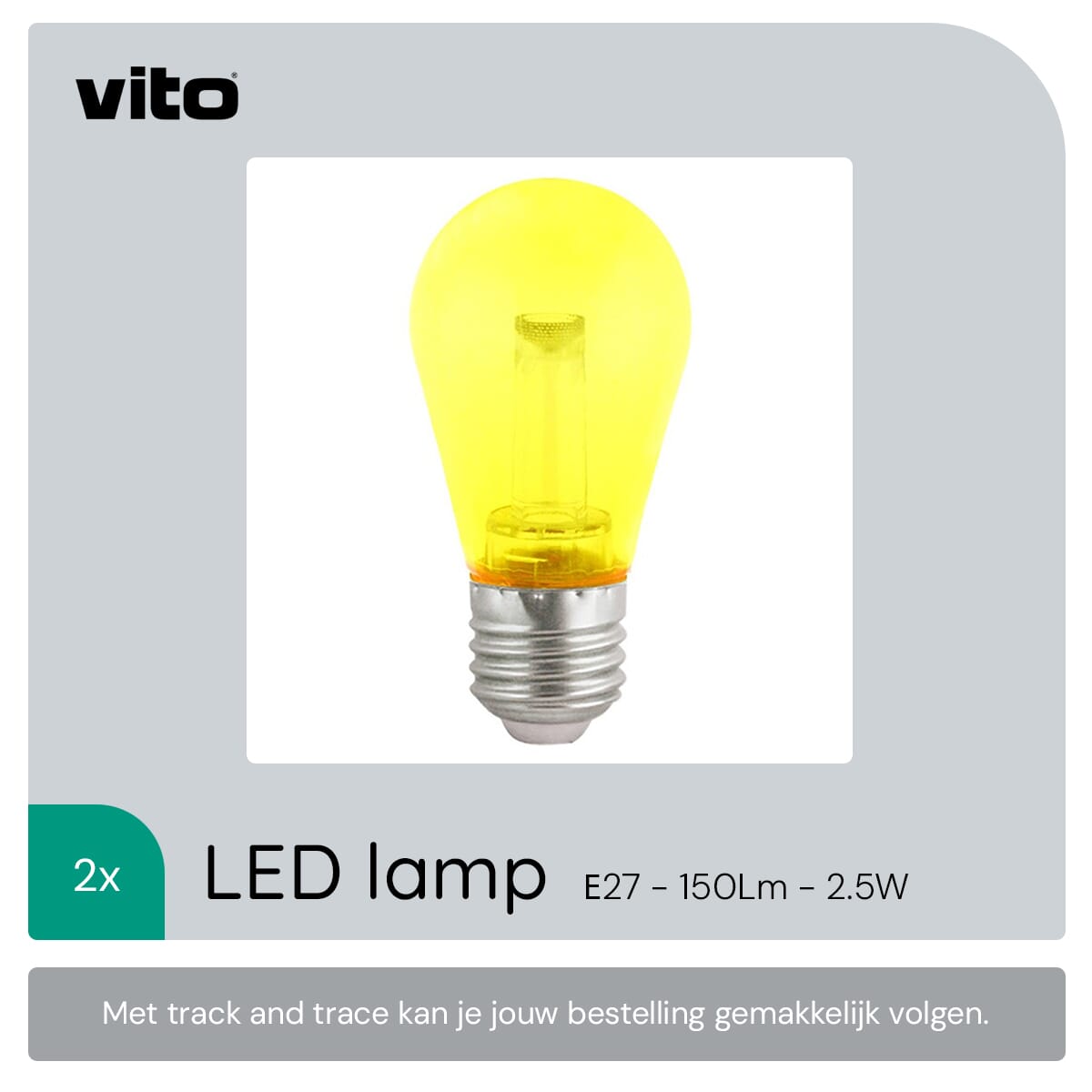De VITO LED Lamp G45 E27 is een energiezuinige lichtbron die ontworpen is om traditionele 18W lampen te vervangen. Met een vermogen van slechts 2.5W biedt deze lamp een lichtopbrengst van 150 lumen. De lamp straalt een warm geel licht uit, wat ideaal is voor sfeerverlichting in feestverlichting, tuinen of horecagelegenheden. De lamp werkt binnen een spanningsbereik van 180-240V en is flikkervrij, wat zorgt voor een stabiele en aangename verlichtingservaring.
