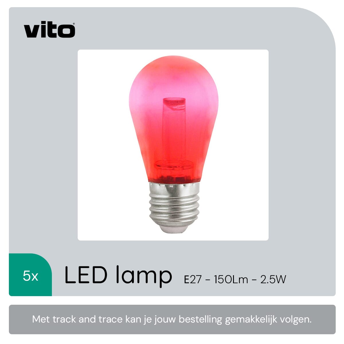 De VITO LED Lamp G45 E27 is een energiezuinige lichtbron die ontworpen is voor diverse toepassingen zoals feestverlichting, tuinverlichting of gebruik in de horeca. Deze lamp vervangt traditionele 18W gloeilampen en biedt een helder rood licht met een lichtopbrengst van 150 lumen. De lamp is geschikt voor een spanning van 180-240V en is flikkervrij, wat zorgt voor een stabiele en aangename verlichtingservaring.
