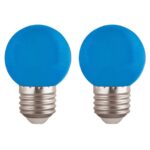 De VITO LED Lamp G45 E27 is een energiezuinige lichtbron die ontworpen is om traditionele 15W lampen te vervangen. Met een vermogen van slechts 2W biedt deze lamp een helderheid van 120 lumen en straalt het een sfeervol blauw licht uit. Deze lamp is ideaal voor gebruik in feestverlichting, tuinen of horecagelegenheden, en wordt geleverd in een set van twee stuks.