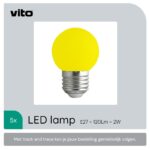 De VITO LED Lamp G45 E27 is een energiezuinige verlichtingsoplossing die ontworpen is om traditionele 15W lampen te vervangen. Met een vermogen van slechts 2W biedt deze lamp een lichtopbrengst van 120 lumen in een warme gele kleur. Deze lamp is geschikt voor diverse toepassingen zoals feestverlichting, tuinverlichting of gebruik in de horeca.