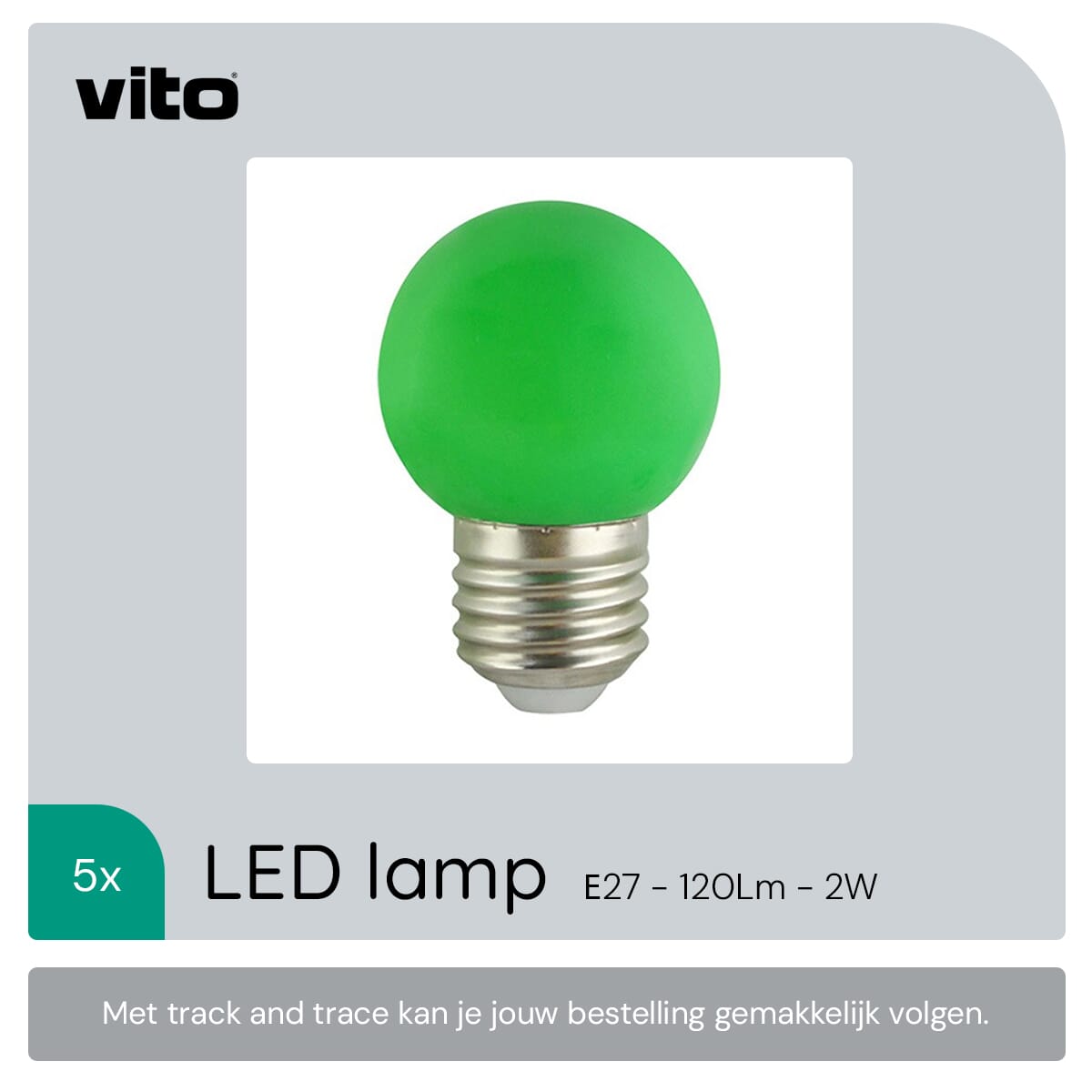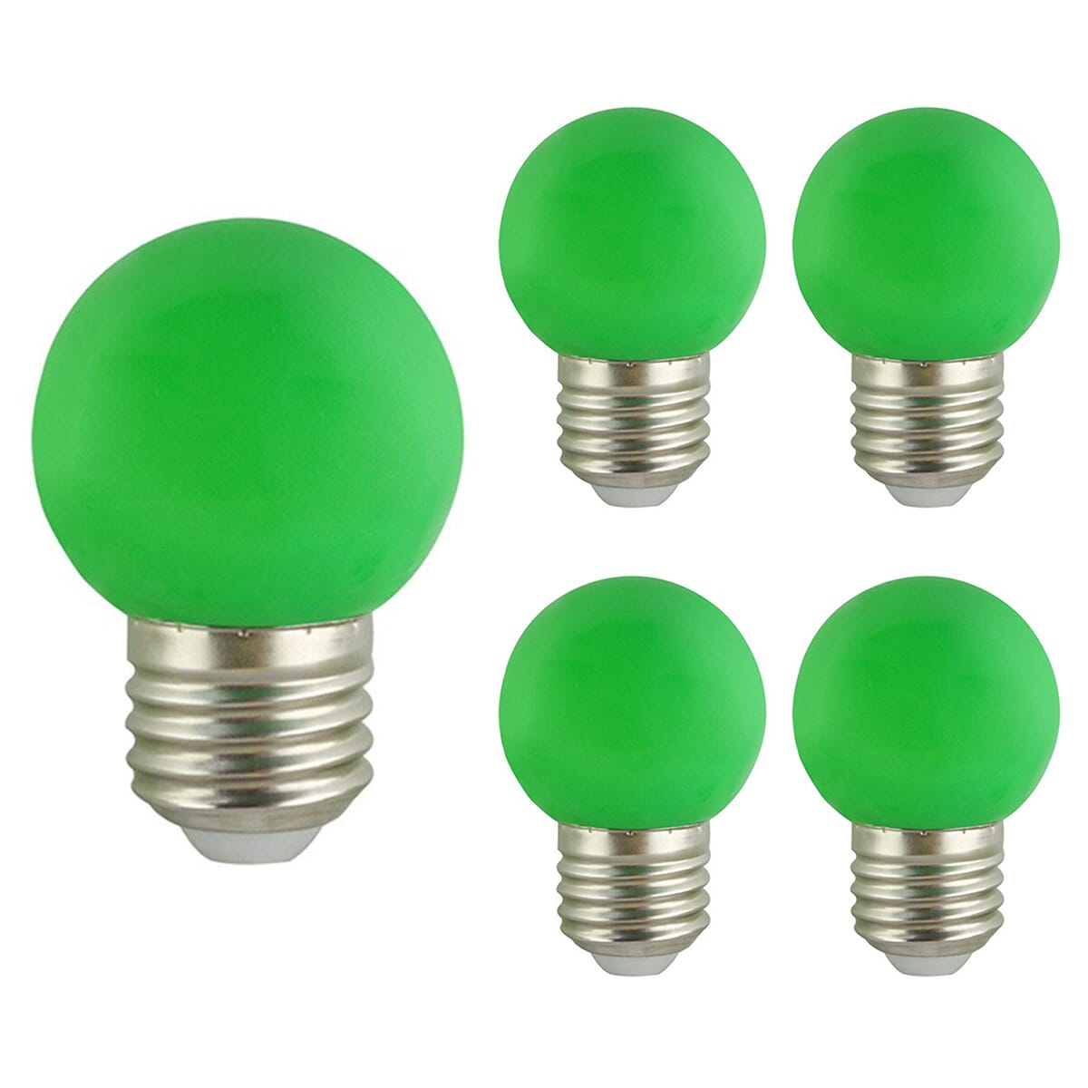 De VITO LED Lamp G45 E27 is een energiezuinige verlichtingsoplossing die ontworpen is om traditionele 15W lampen te vervangen. Met een vermogen van slechts 2W biedt deze lamp een lichtopbrengst van 120 lumen. De lamp straalt groen licht uit, wat het ideaal maakt voor feestverlichting, tuinverlichting of gebruik in de horeca. Deze lampen zijn geschikt voor een spanning van 180-240V en worden geleverd in een set van vijf stuks.