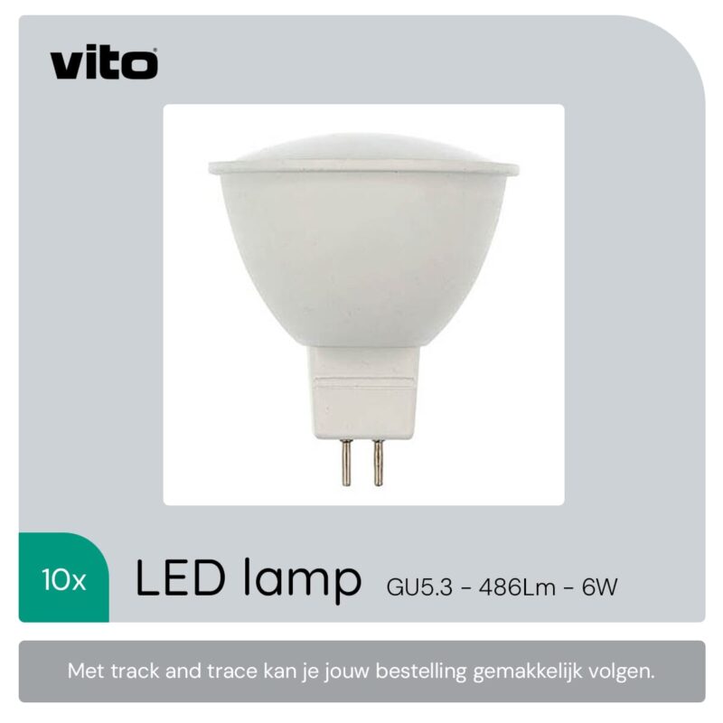 De VITO LED Spot GU5.3 MR16 is een energiezuinige verlichtingsoplossing die ontworpen is om traditionele 40W halogeenlampen te vervangen. Met een vermogen van 6W en een lichtopbrengst van 486 lumen, biedt deze LED spot een warm wit licht van 2700K. Deze lamp is ideaal voor gebruik in campers, caravans of als inbouwspot in diverse ruimtes.
