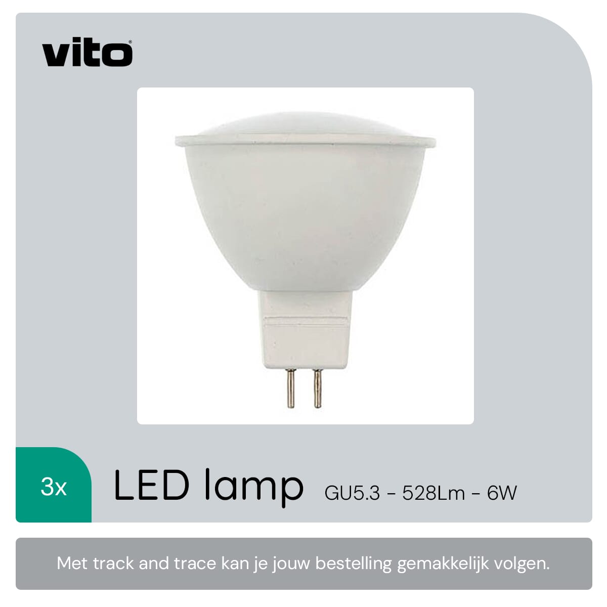 De VITO LED Spot GU5.3 MR16 is een energiezuinige verlichtingsoplossing die ontworpen is om traditionele 50W halogeenlampen te vervangen. Met een vermogen van 6W en een lichtopbrengst van 528 lumen, biedt deze LED spot helder koud wit licht van 6400K. Deze spot is ideaal voor gebruik in campers, caravans of als inbouwspot in diverse ruimtes.