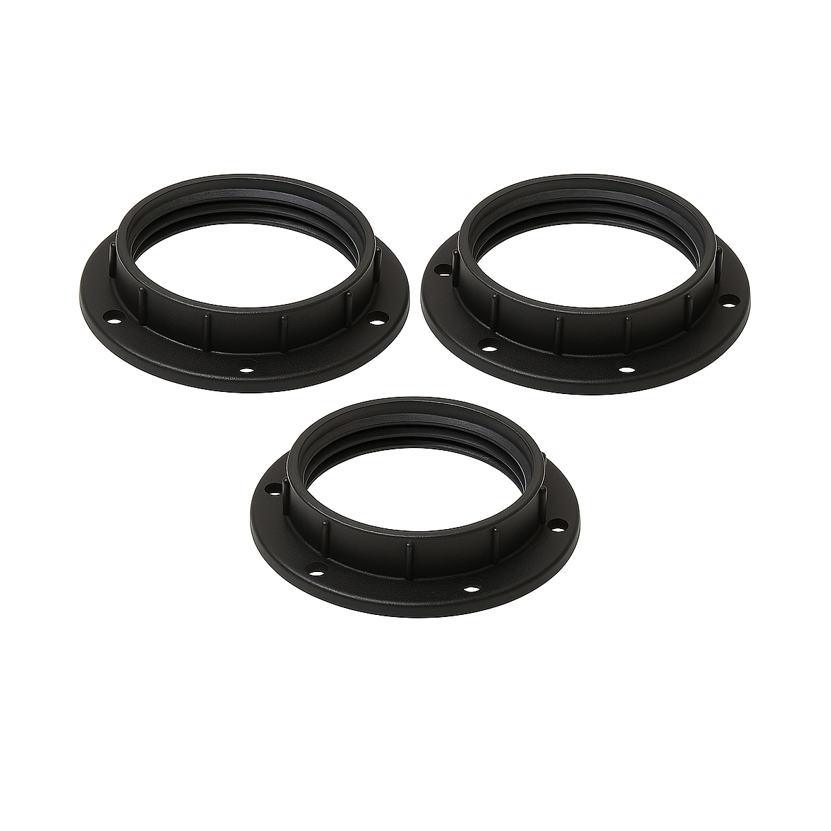 Deze losse lamphouder ringen zijn geschikt voor standaard E27 fittingen en zorgen voor een nette en veilige afwerking van je lamp. Ideaal als vervangingsonderdeel of voor gebruik bij zelfbouw- of doe-het-zelfprojecten. Dankzij de robuuste kunststof constructie en het universele ontwerp zijn ze eenvoudig te bevestigen en passen ze op vrijwel elke E27 fitting met schroefdraad.
