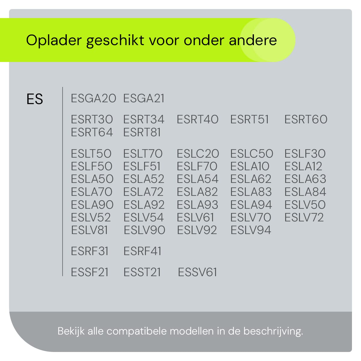 De VLTG Oplader is compatibel met een breed scala aan Panasonic scheerapparaten, waaronder de ESGA, ESRT, ESLT, ESLC, ESLF, ESLA, ESLV, ESRF, ESSF, ESST en ESSV series. Dit betekent dat je niet langer hoeft te zoeken naar de juiste oplader voor jouw specifieke model. Of je nu een ESGA20 of een ESLA94 hebt, deze oplader past perfect. We hebben hieronder de volledige lijst met geschikte scheerapparaten voor deze oplader.