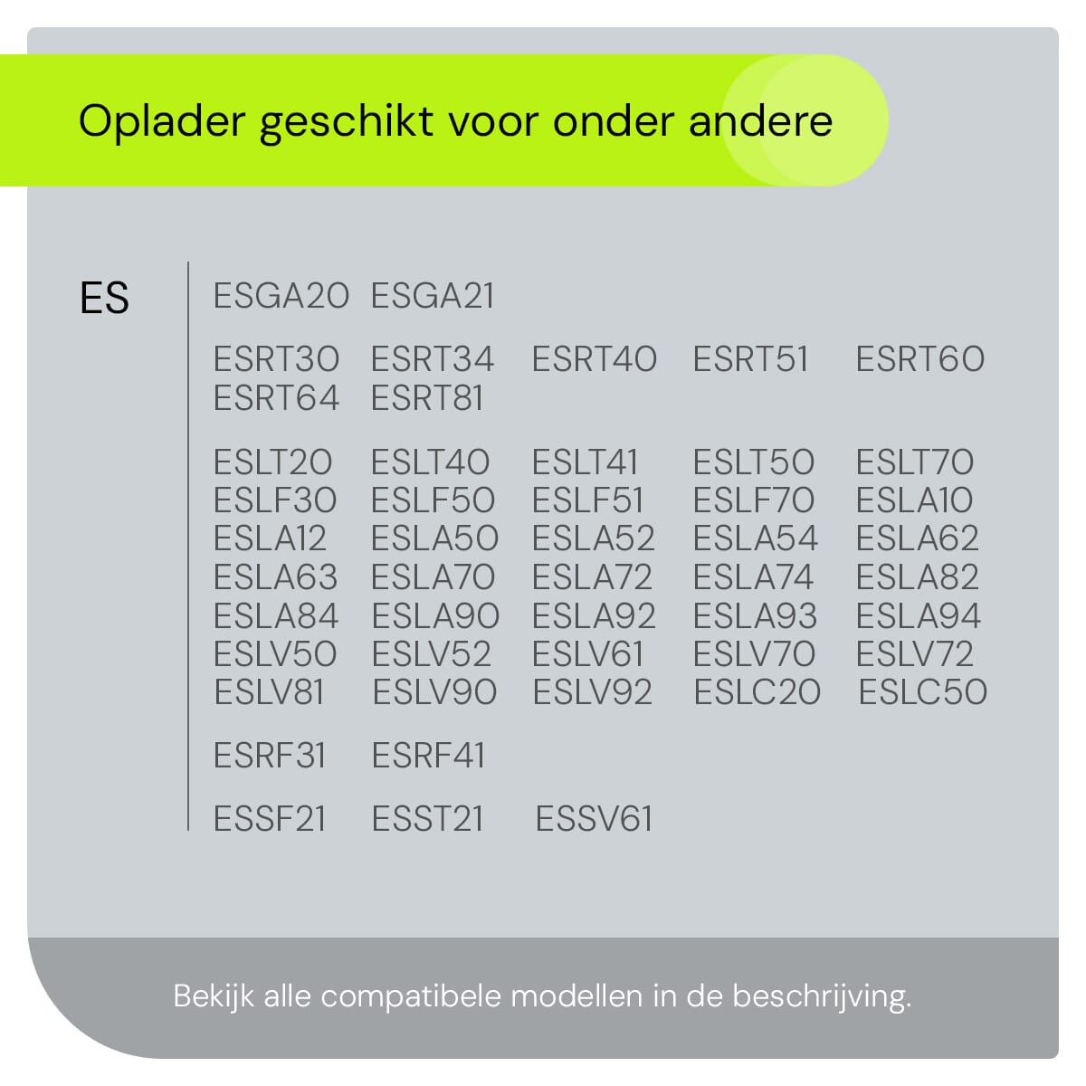 De VLTG Oplader is compatibel met een breed scala aan Panasonic scheerapparaten, waaronder de ESGA, ESRT, ESLT, ESLC, ESLF, ESLA, ESLV, ESRF, ESSF, ESST en ESSV series. Dit betekent dat je niet langer hoeft te zoeken naar de juiste oplader voor jouw specifieke model. Of je nu een ESGA20 of een ESLA94 hebt, deze oplader past perfect. We hebben hieronder de volledige lijst met geschikte scheerapparaten voor deze oplader.