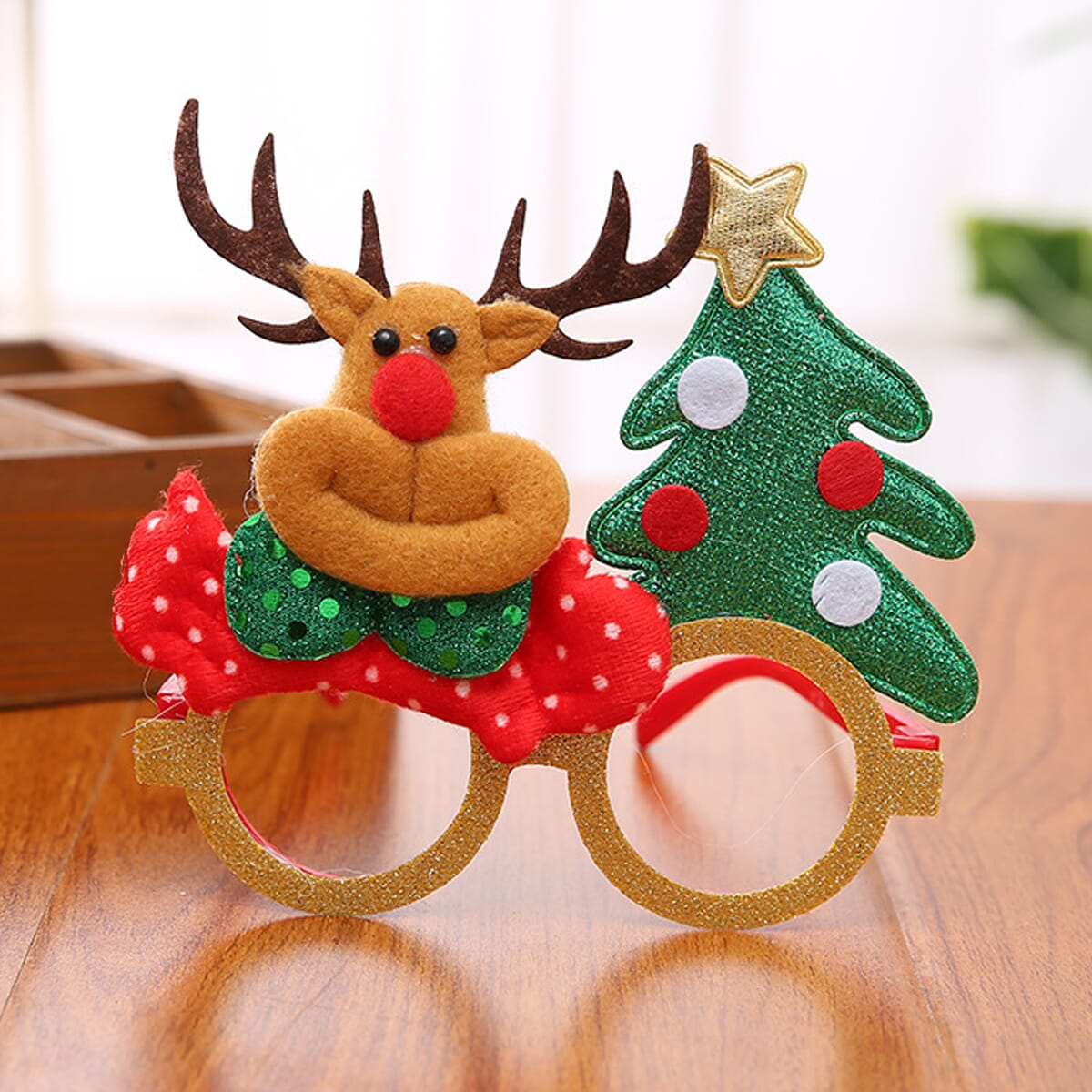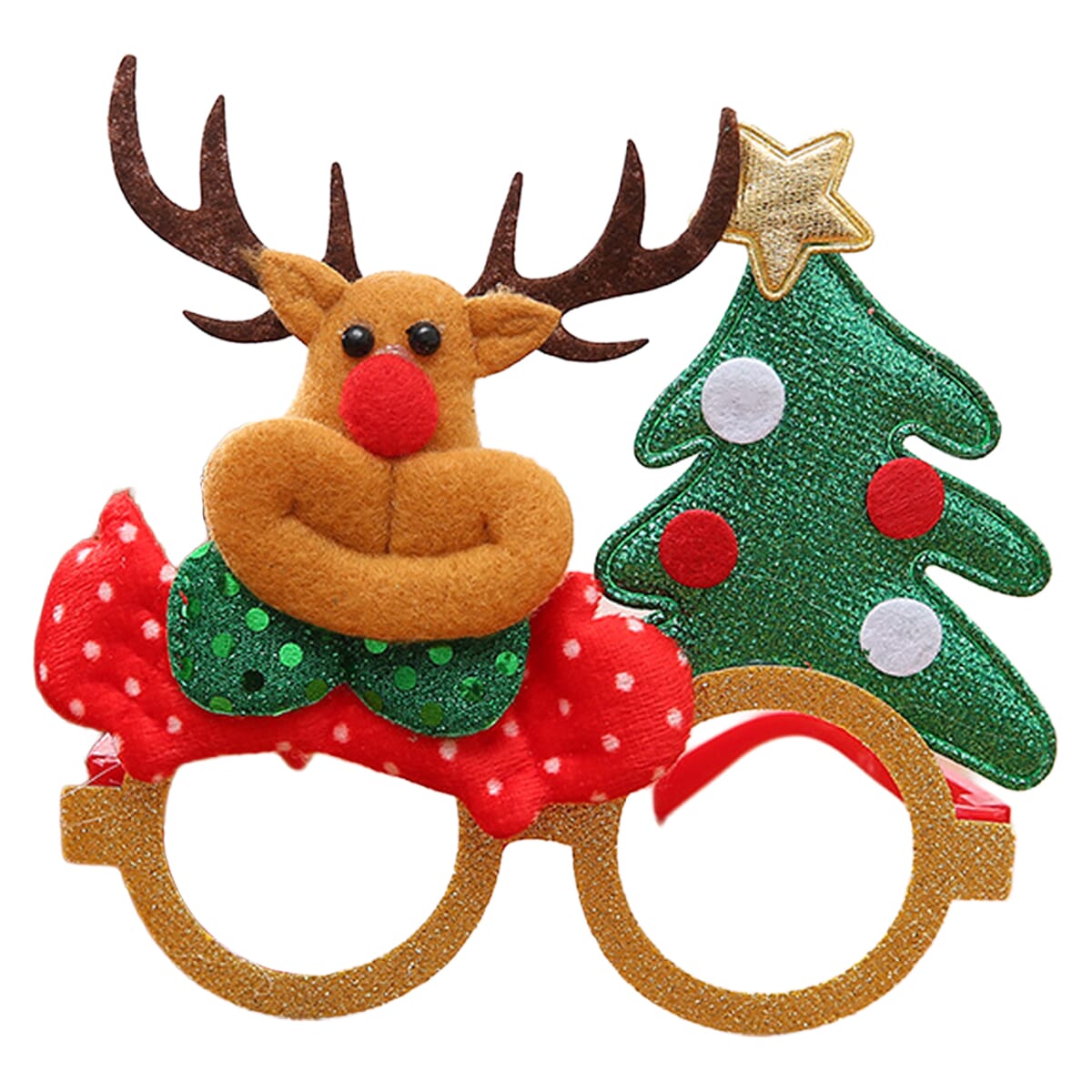 De feestelijke kerstbril met rendier en kerstboom is een leuke en eenvoudige manier om je kerstoutfit op te vrolijken.