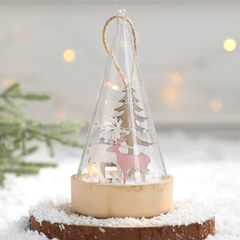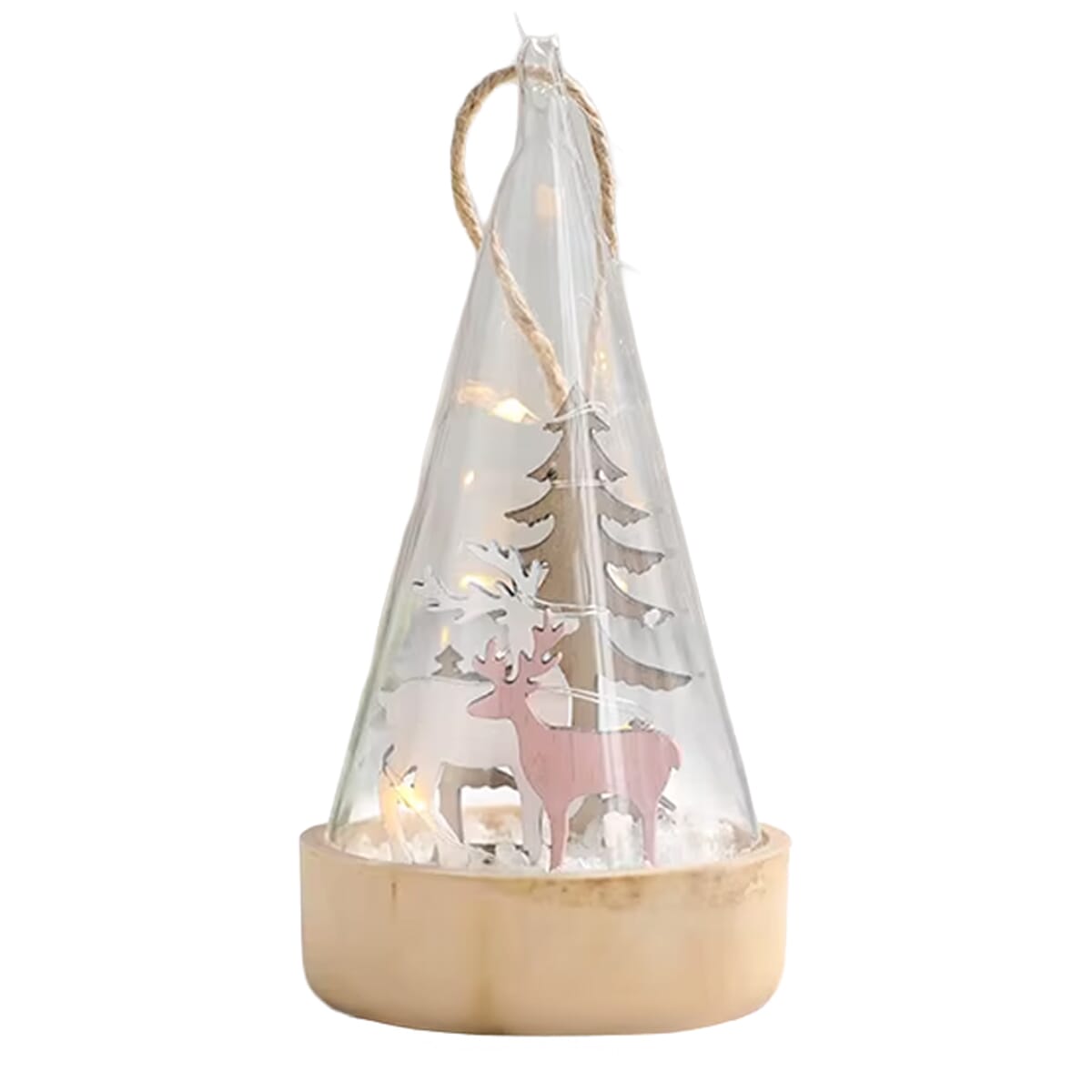 Glazen Kerst Stolp – 12.5×6.2cm – Met Herten en Bomen