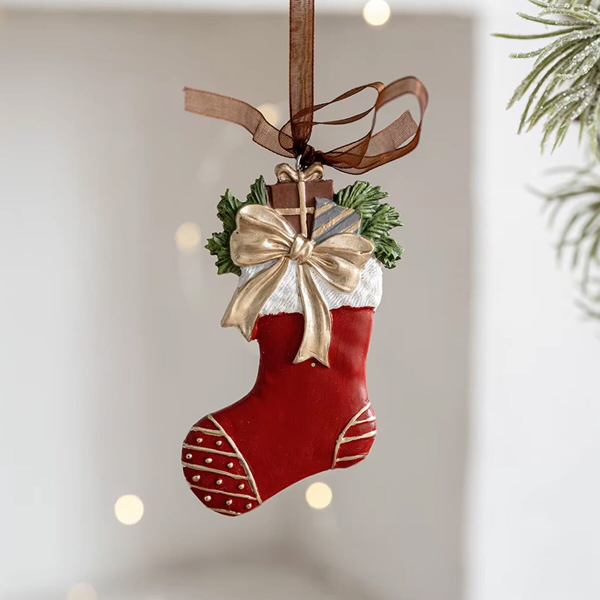 Kerst Hanger – Kerstsok Ornament met Strik & Cadeau