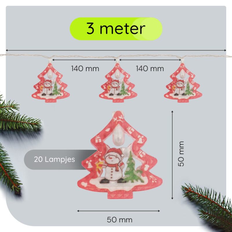 Geef je huis een feestelijke uitstraling met deze kerstboomverlichting. De lichtslinger bestaat uit een reeks van 20 heldere lampjes die de kerstboom en sneeuwpop prachtig verlichten. Perfect voor het creëren van een warme en uitnodigende sfeer tijdens de feestdagen.