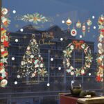 De set bevat een grote kerstboom en een kerstkrans, die beide een prominente en feestelijke uitstraling geven aan elk raam. Deze ontwerpen zijn ideaal voor het creëren van een winterse sfeer in zowel woonkamers als commerciële ruimtes.