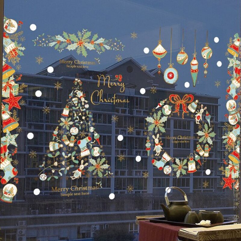 Kerst Raamstickers – Grote Kerstboom & Kerstkrans