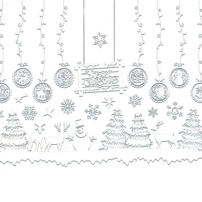 De kerst raamstickers met een winterlandschap, kerstballen, sneeuw en een sneeuwpop zijn ontworpen om ramen tijdens de feestdagen te versieren. Deze herbruikbare statische raamfolie biedt een eenvoudige manier om een feestelijke sfeer in huis te creëren zonder lijm of plakresten achter te laten. Geschikt voor zowel woonkamers als kinderkamers, deze decoratie is ideaal voor iedereen die op zoek is naar een snelle en gemakkelijke manier om hun ramen in kerstsfeer te brengen.