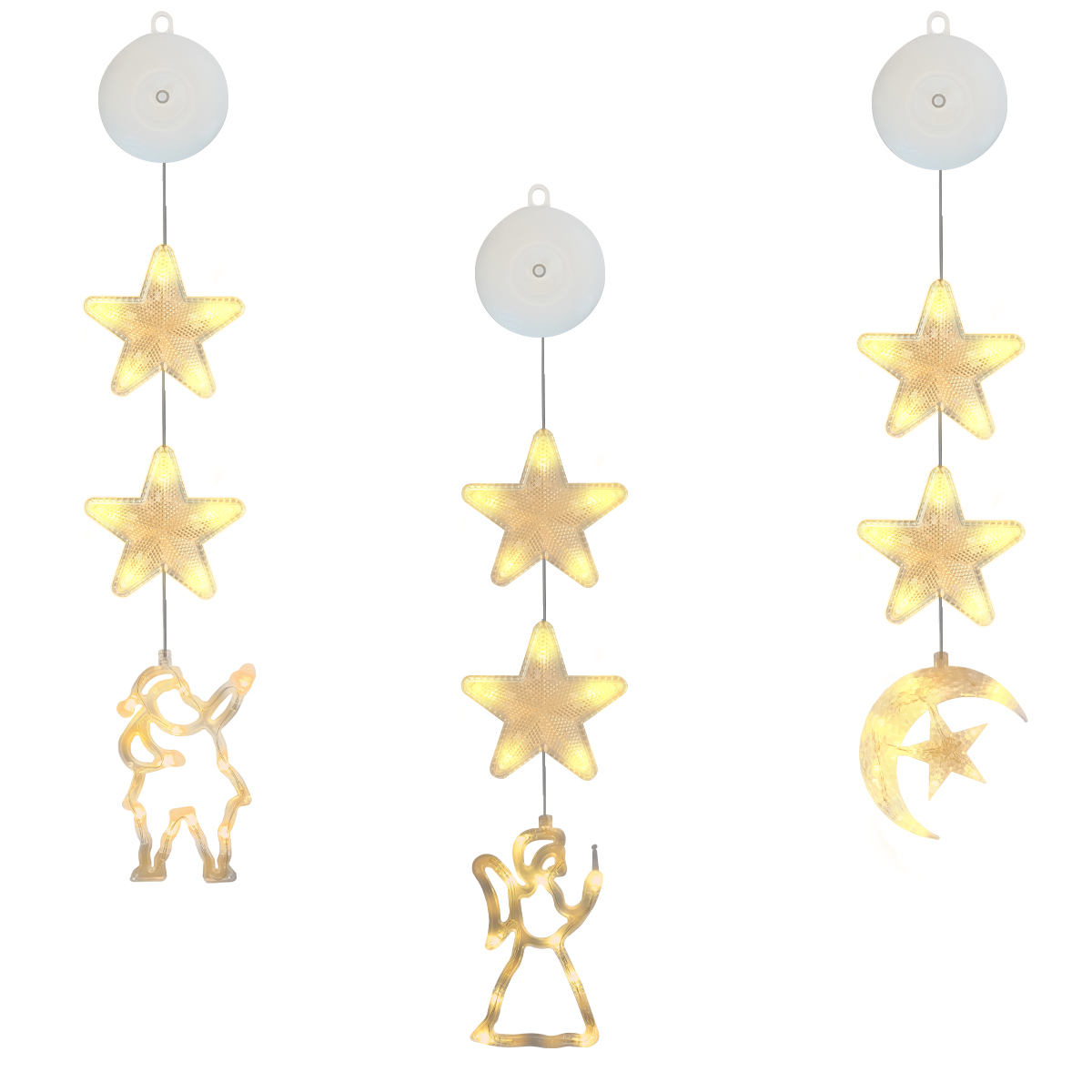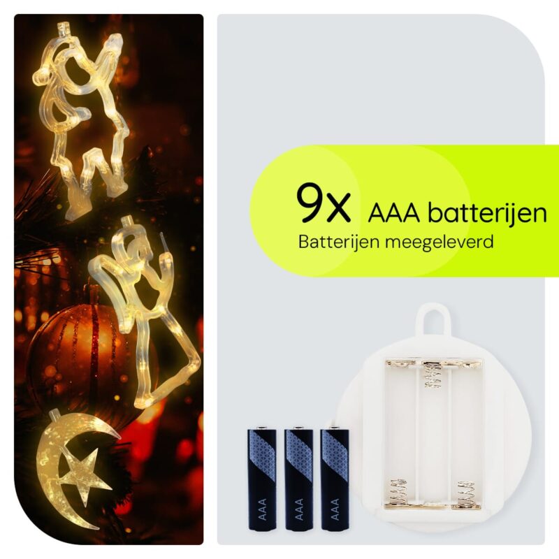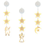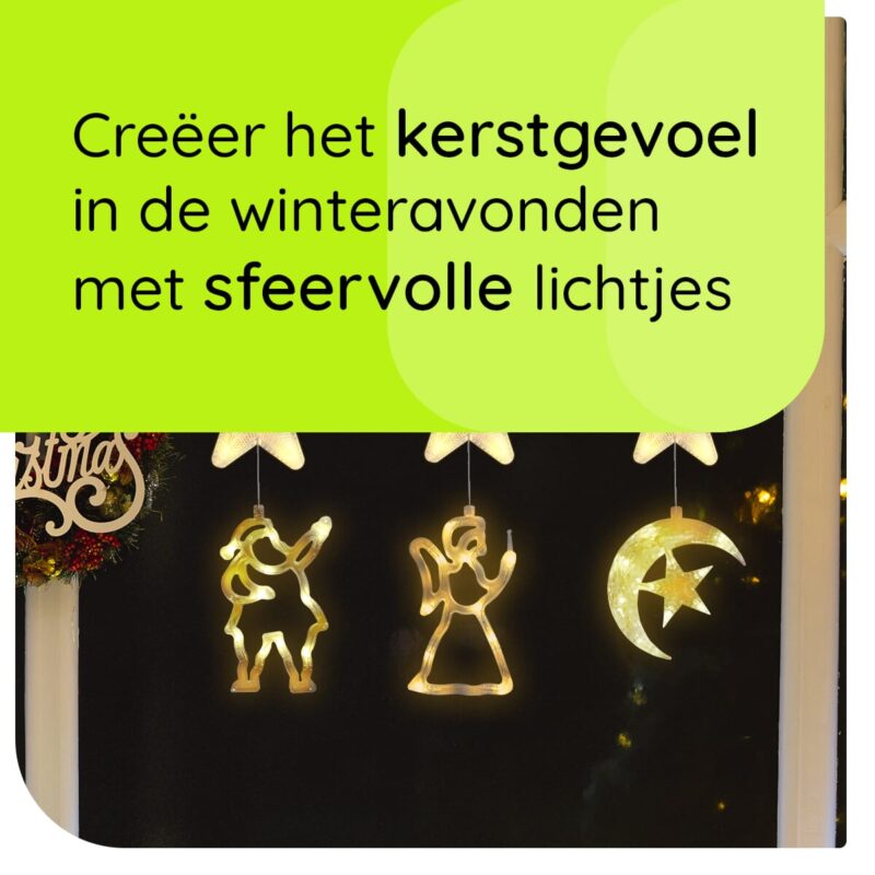 Kerstverlichting set voor het raam met engel, halve maan en kerstman