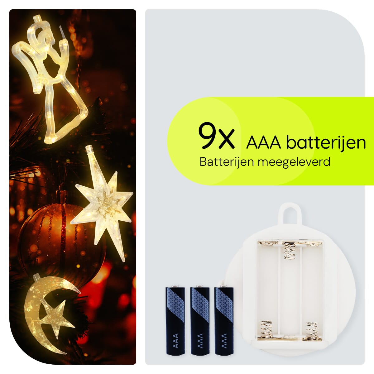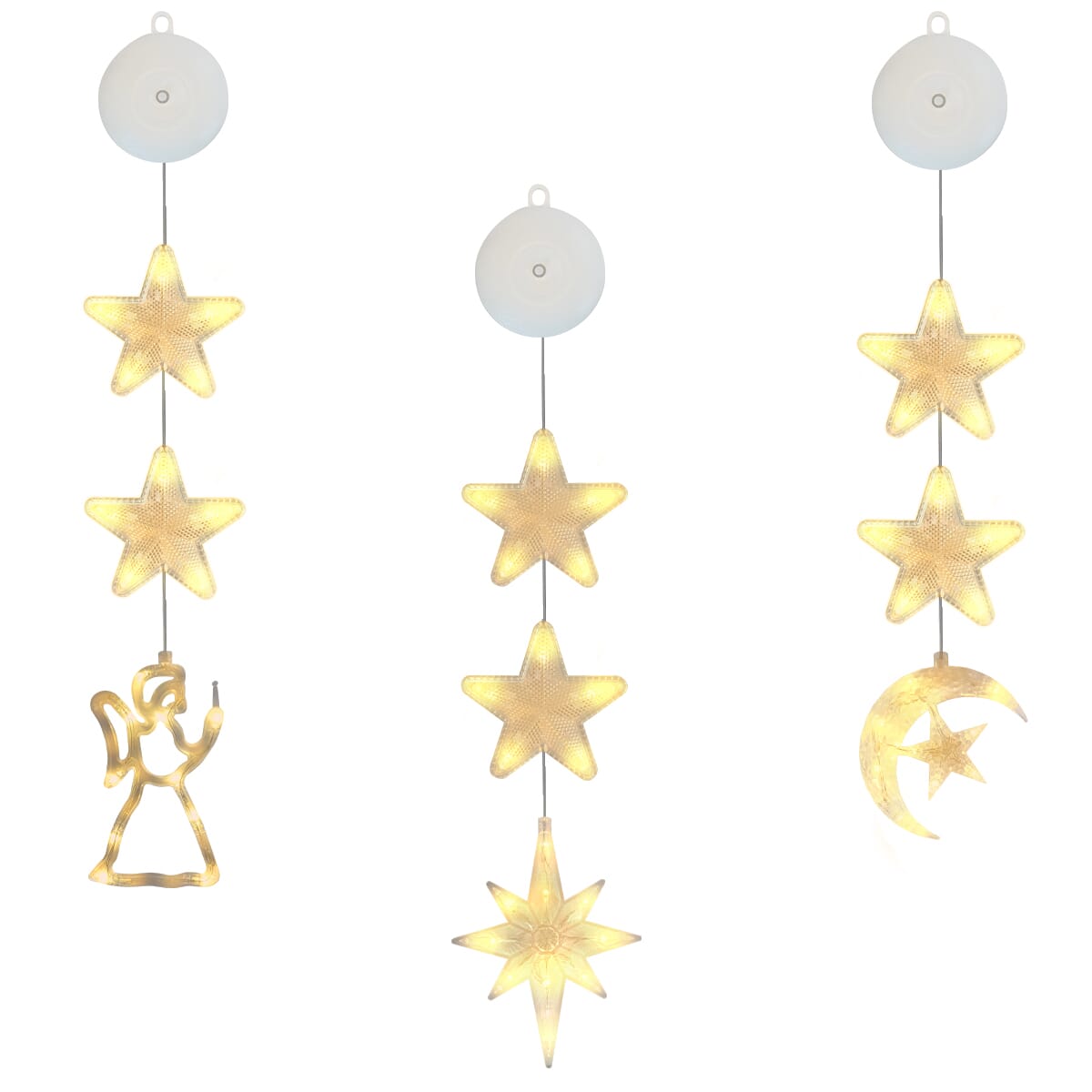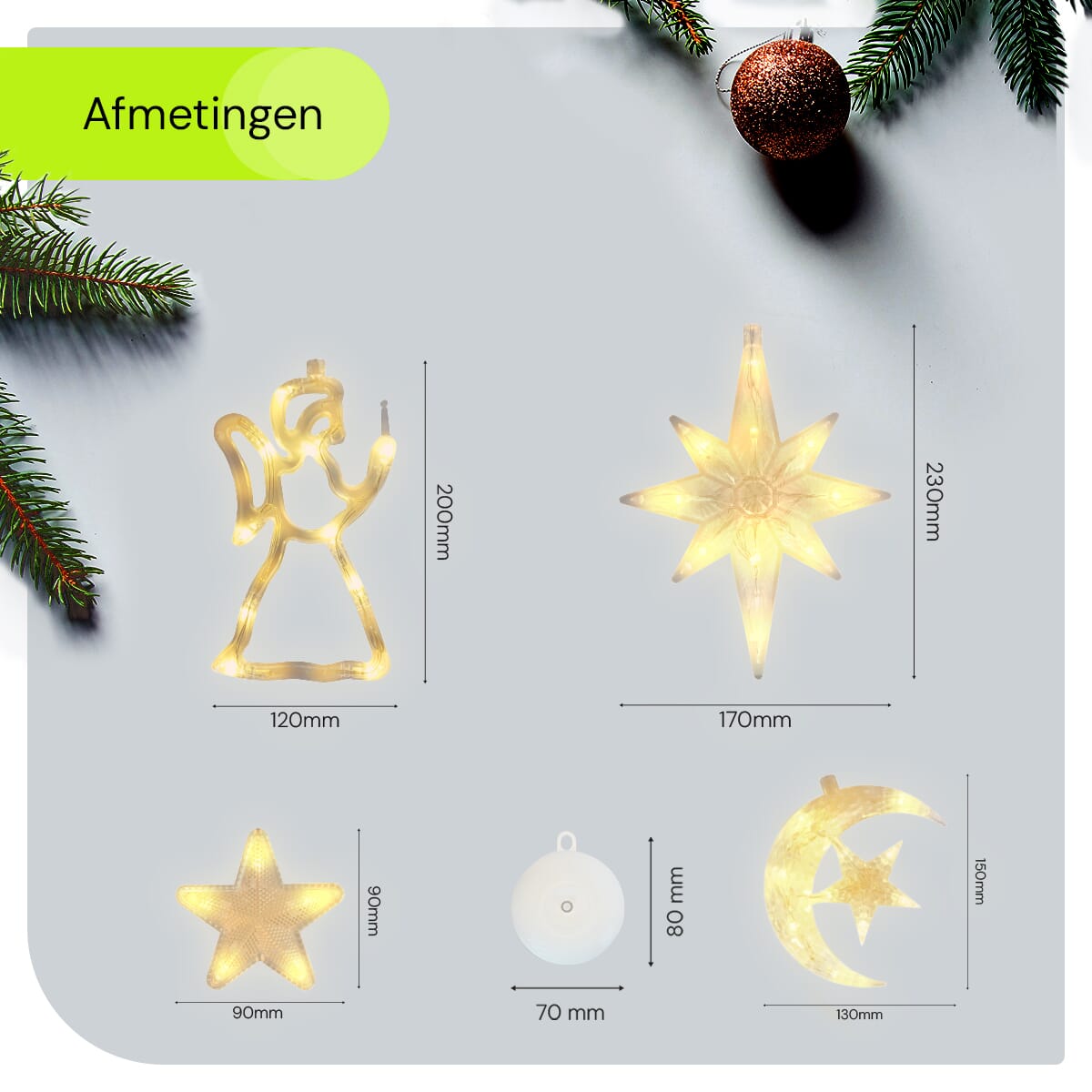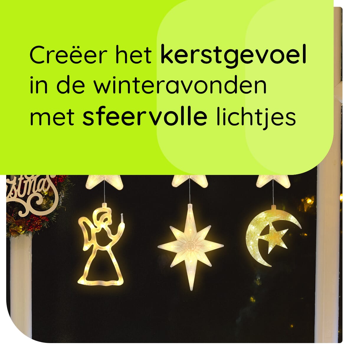Kerstverlichting set voor het raam met engel, halve maan en noorderster