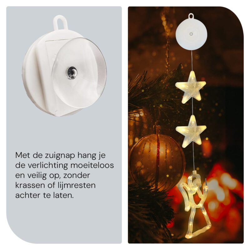 Met de meegeleverde zuignappen is het ophangen van deze kerstverlichting een fluitje van een cent. Plaats ze eenvoudig op elk raam en geniet van een prachtig verlichte kerstsiering voor binnen.