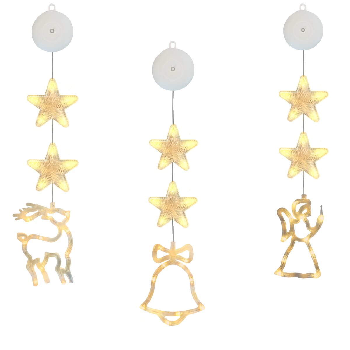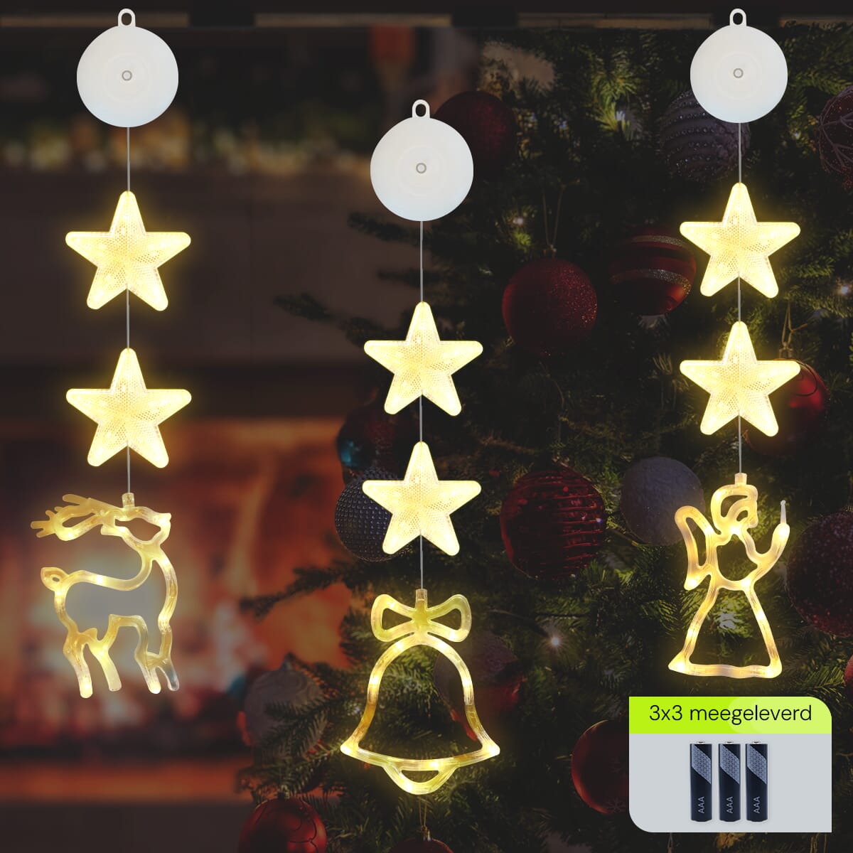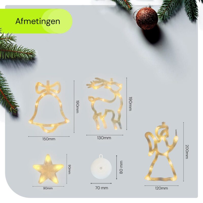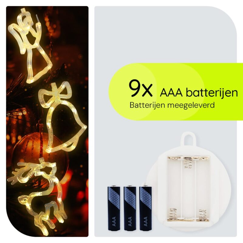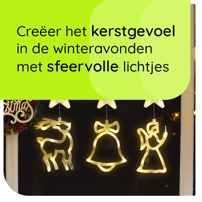 Kerstverlichting set voor het raam met engel, kerstbel en rendier