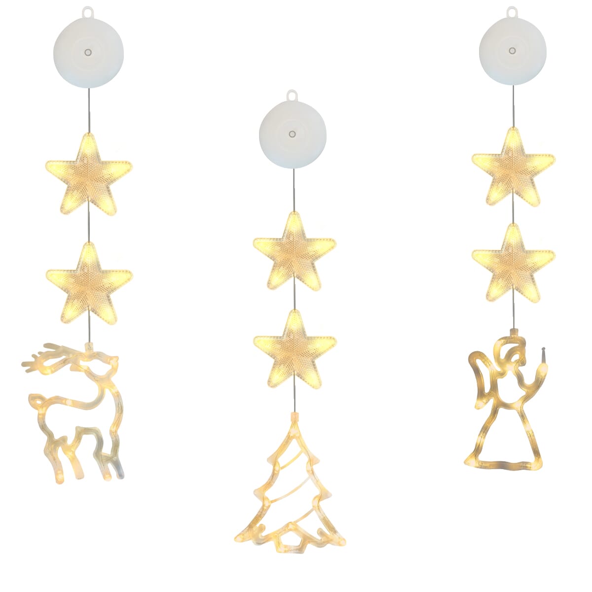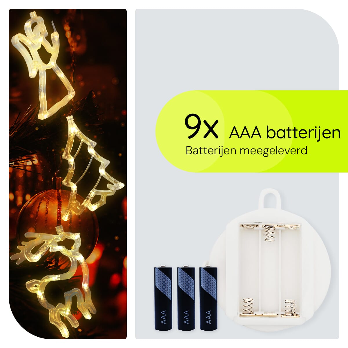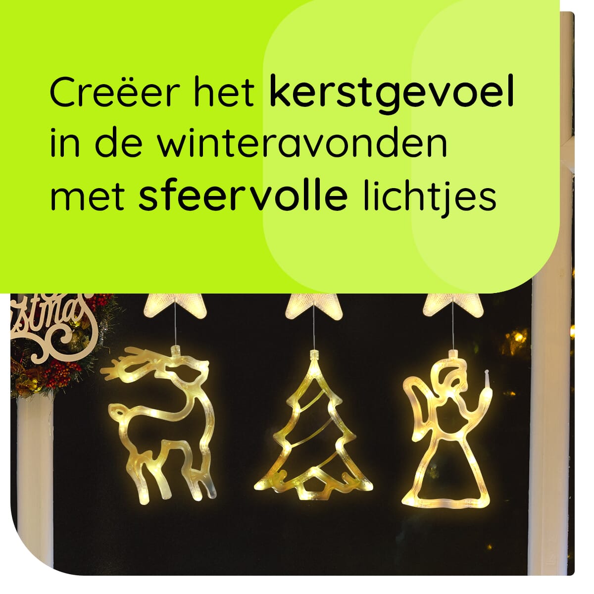 Kerstverlichting set voor het raam met engel, kerstboom en rendier