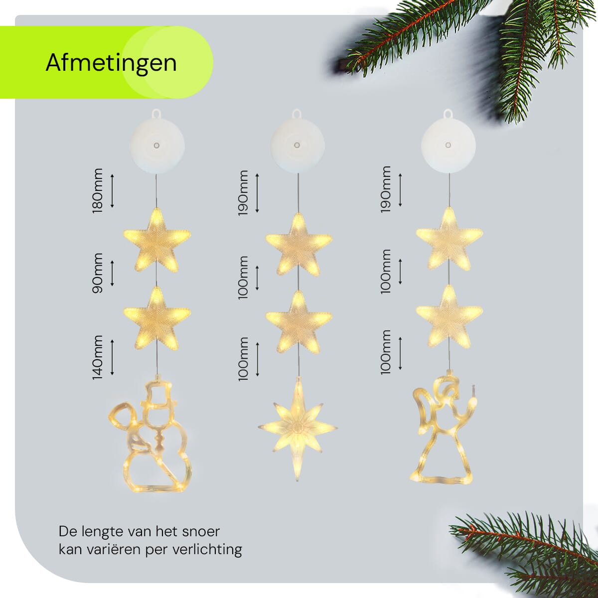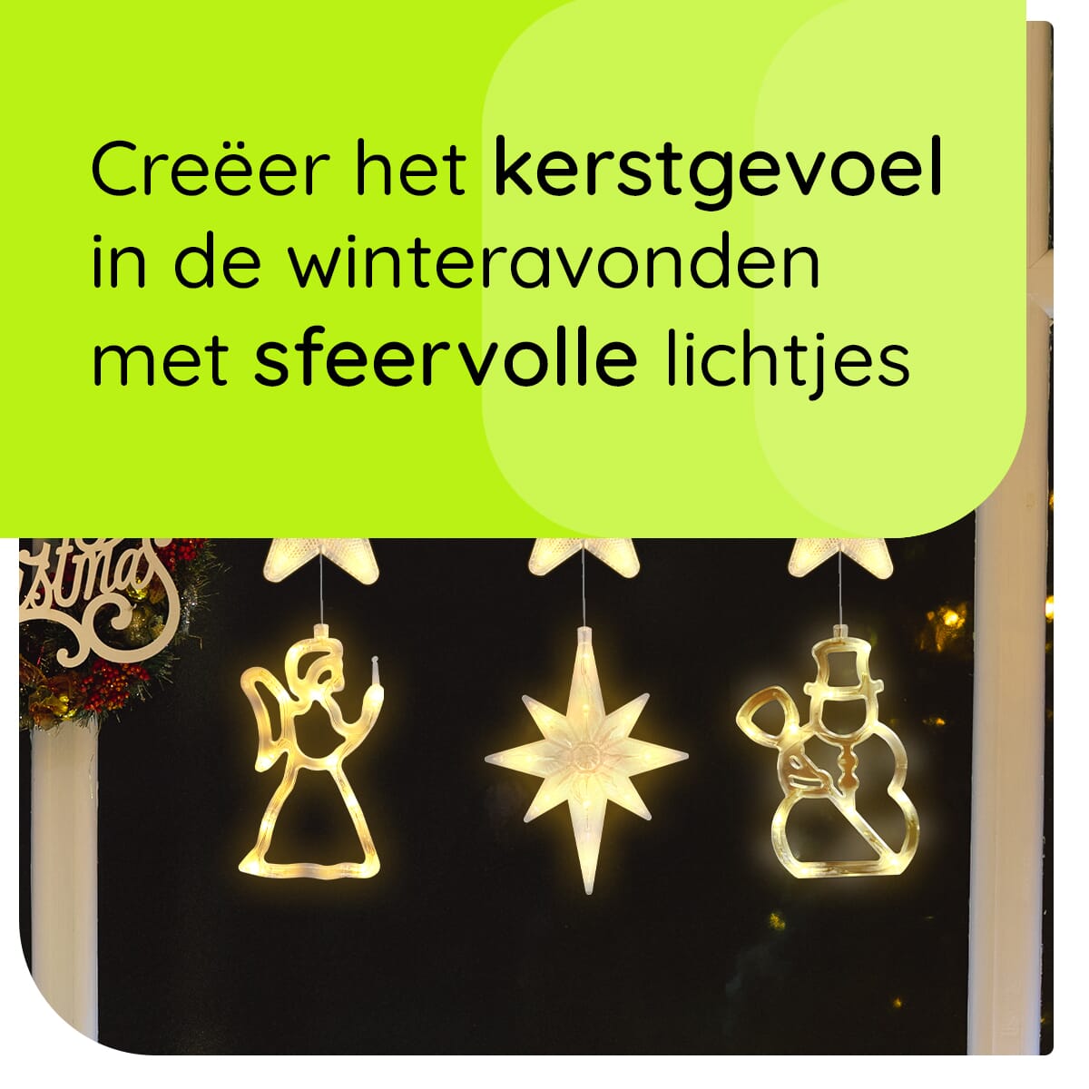 Kerstverlichting set voor het raam met engel, noorderster en sneeuwpop