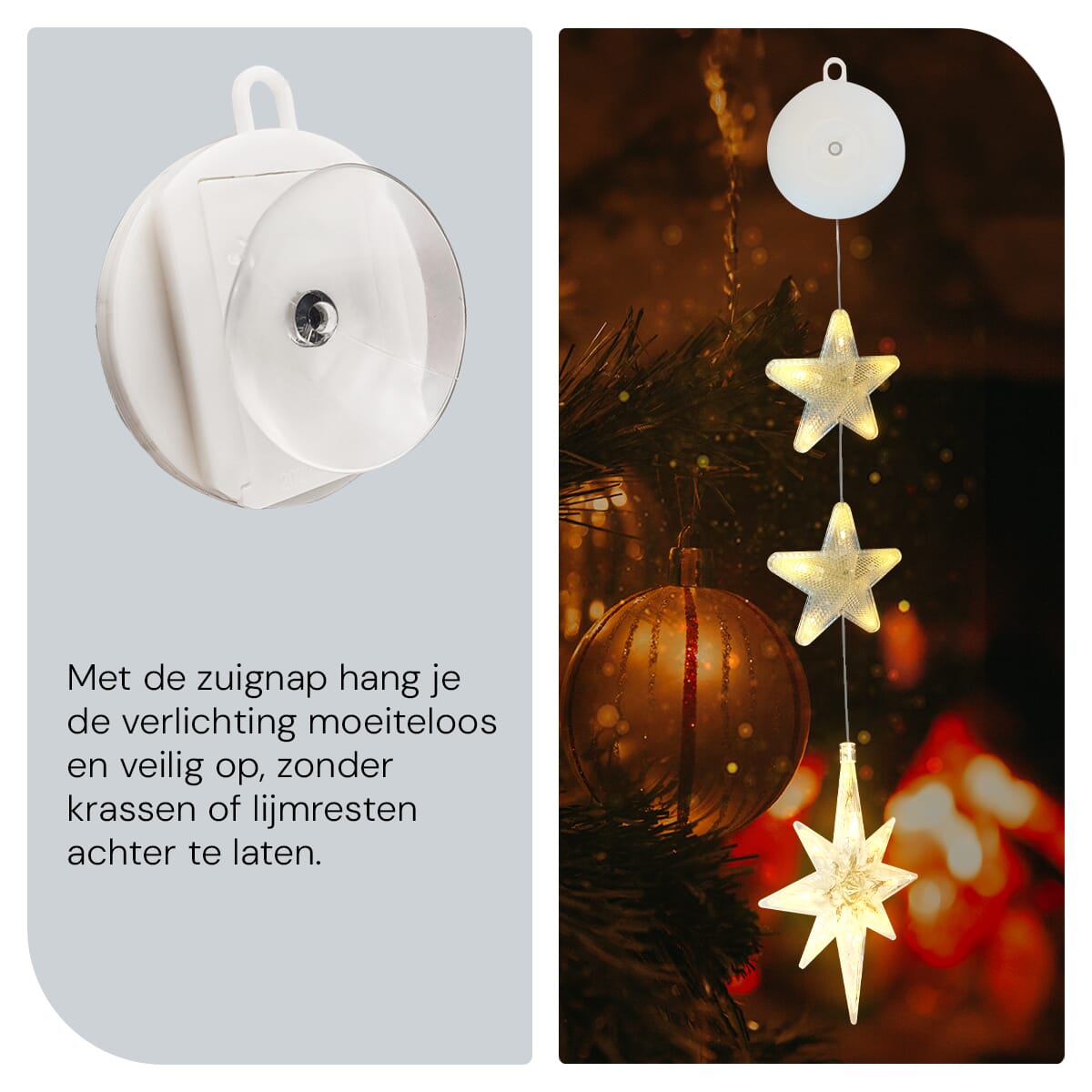 - Eenvoudige bevestiging: Dankzij de handige zuignappen bevestig je de kerstverlichting moeiteloos aan elk raam.