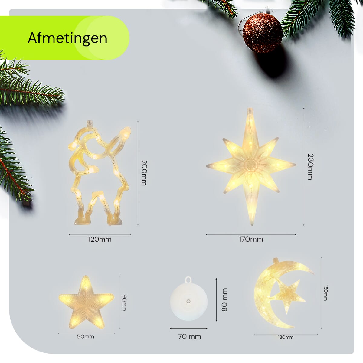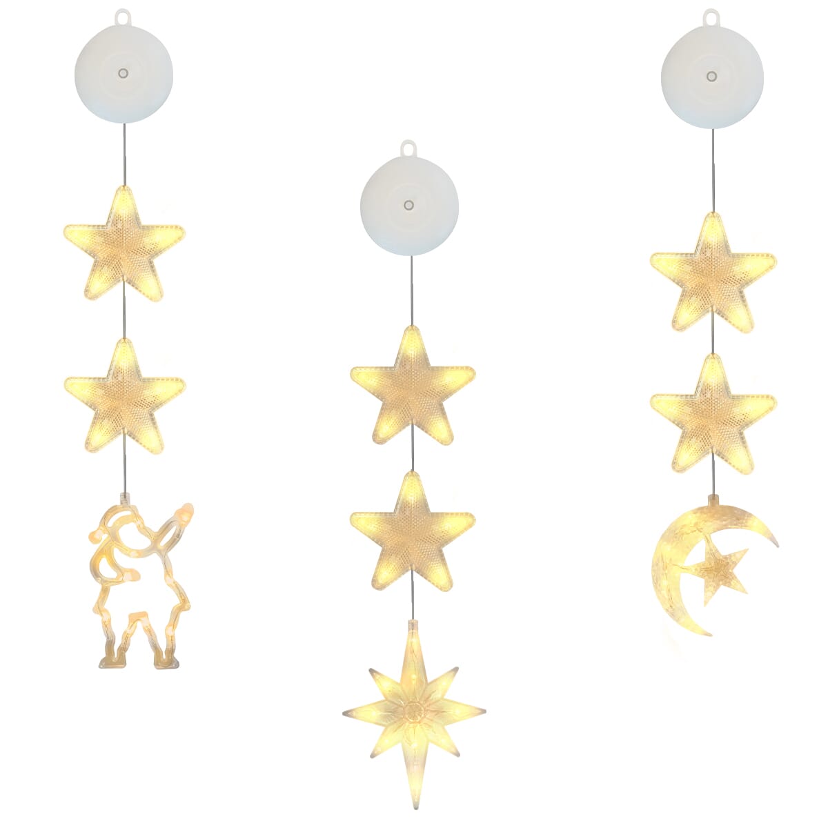 Kerstverlichting set voor het raam met halve maan, kerstman en noorderster
