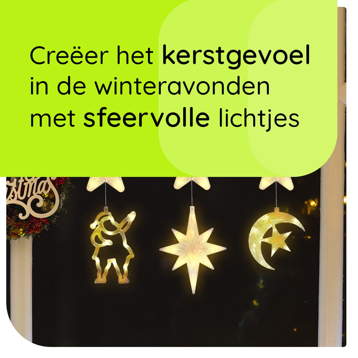 Met de meegeleverde zuignappen is het ophangen van deze kerstverlichting een fluitje van een cent. Plaats ze eenvoudig op elk raam en geniet van een prachtig verlichte kerstsiering voor binnen.