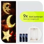 Breng de magie van de feestdagen naar je huis met deze betoverende set kerstverlichting. Deze unieke set van drie figuren – een halve maan, een maan en sterren – zorgt voor een warme en feestelijke sfeer in elke kamer. Perfect voor wie op zoek is naar prachtige kerstdecoratie voor binnen.