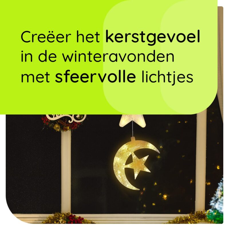 Kerstverlichting Raam Halve Maan met Ster – Een Magische Sfeer voor Binnen