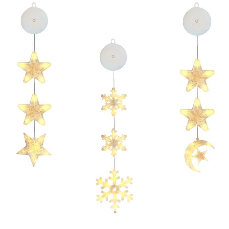 Kerstverlichting set voor het raam met halve maan, sneeuwvlokken en sterren