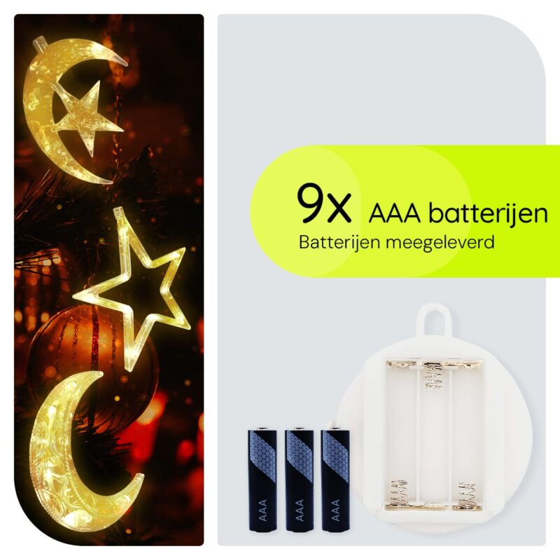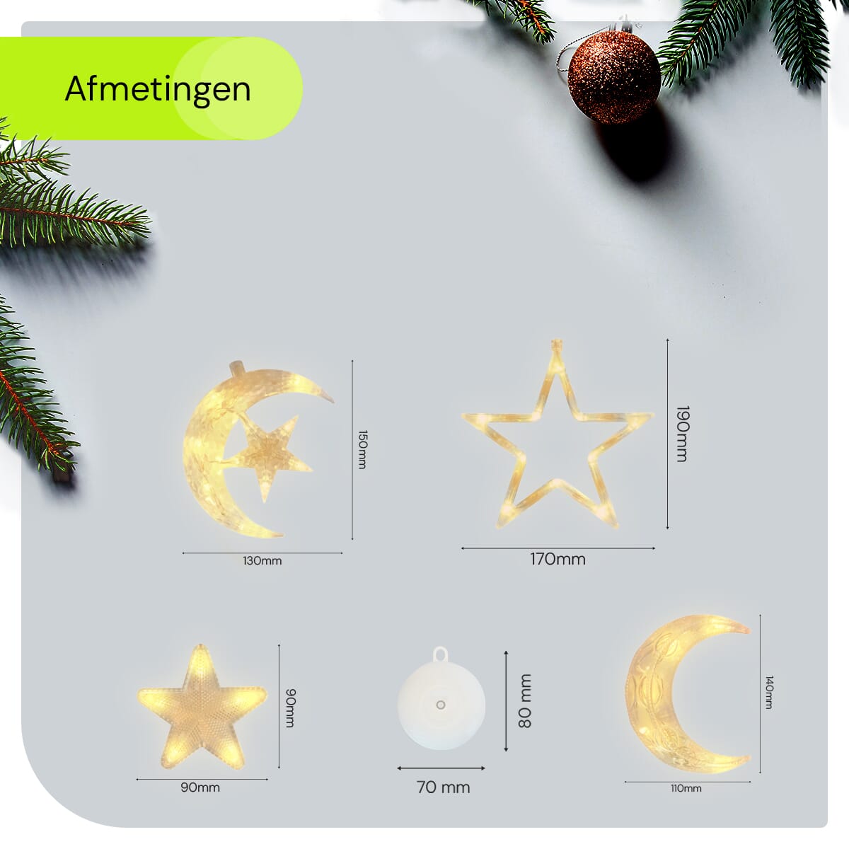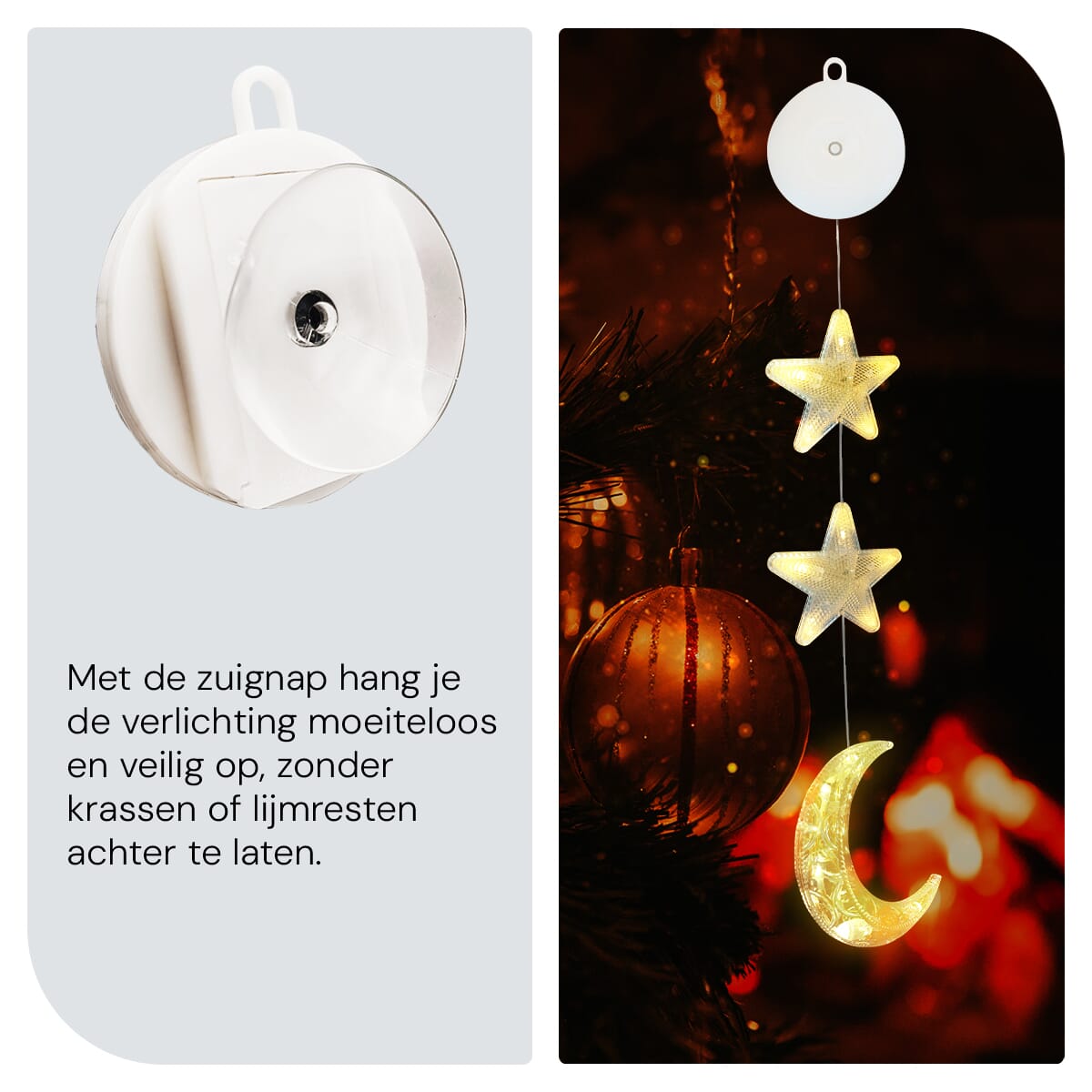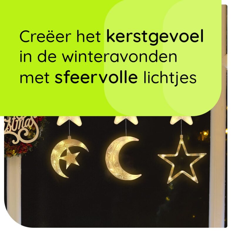 Kerstverlichting set voor het raam met halve maan, ster en maan